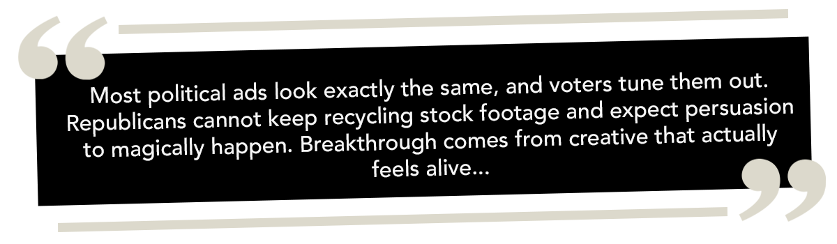 This week’s One Quote comes from President of Push Digital, Corey Vale, and an op-ed he published in C&E this week about HOW DIGITAL IS GOING TO BE KEY IN 2026, GUYS. Ok, ok, that’s maybe oversimplifying it a bit. His main point is that the GOP doesn’t have a messaging problem, but a distribution problem. Maybe. But the cynic in my says his remedies aren’t going to fix much unless campaign culture on the right changes. Still, I do appreciate that amid his talk about audience targeting and CTV, he finds time to call out the need for good creative. I’m all for reminding people that good creative matters. In fact - let’s shout it from the rooftops! Most political ads DO tend to look and feel the same to the voters who are receiving them. Let’s figure out a way to make our ads feel alive this year, shall we? Just a thought!