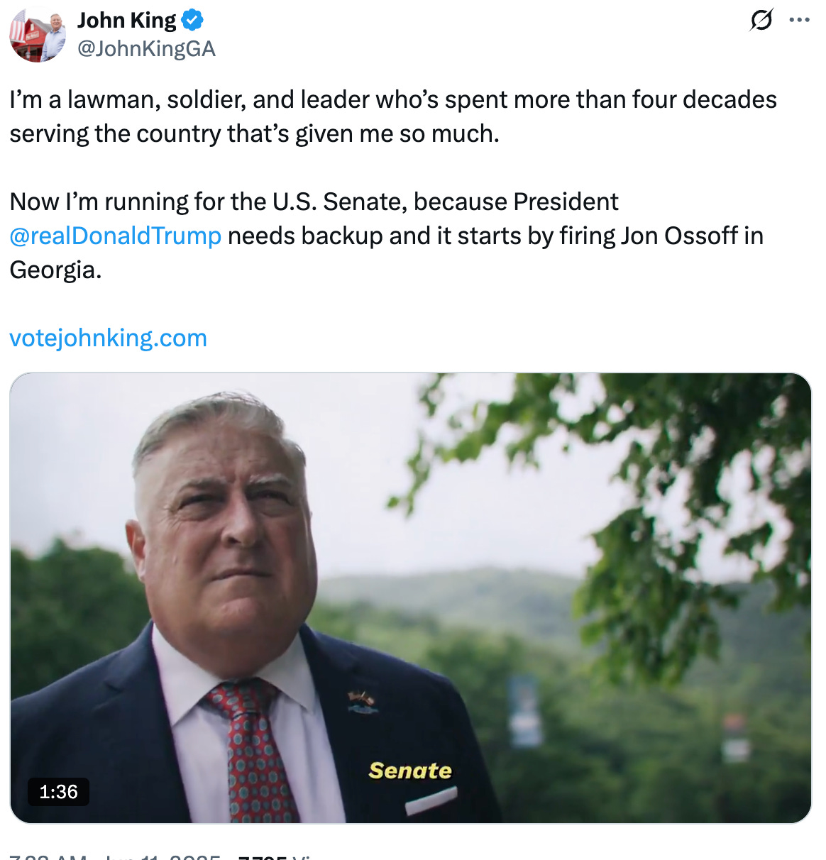 Shout-out to John King for his slick new ad. It’s definitely a far cry from the selfie launch video he posted a few weeks ago! (Which if you remember: I didn’t hate!) But honestly ya’ll - this is a great ad and brings to mind a good tip I should remember more often: If you can’t get a new script approved or record the candidate speaking directly to camera, take advantage of the stump speech! In this ad, we get King narrating the whole thing which is awesome, but it’s clearly from a speech he’s delivering at some kind of event. At least, that’s what it looks like. Smart. Anyway: Film those stump speeches! Even if the video ain’t great, you can always utilize the audio.